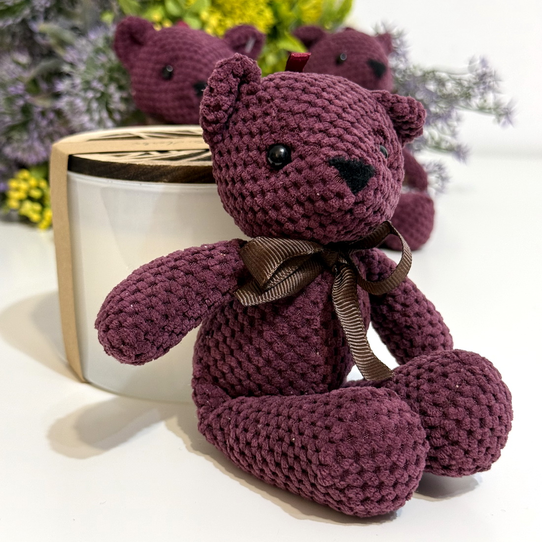 Culoarea ursulețului din pluș este mov închis cu fundă de culoare maro, fiind o alegere inspirată pentru copii !