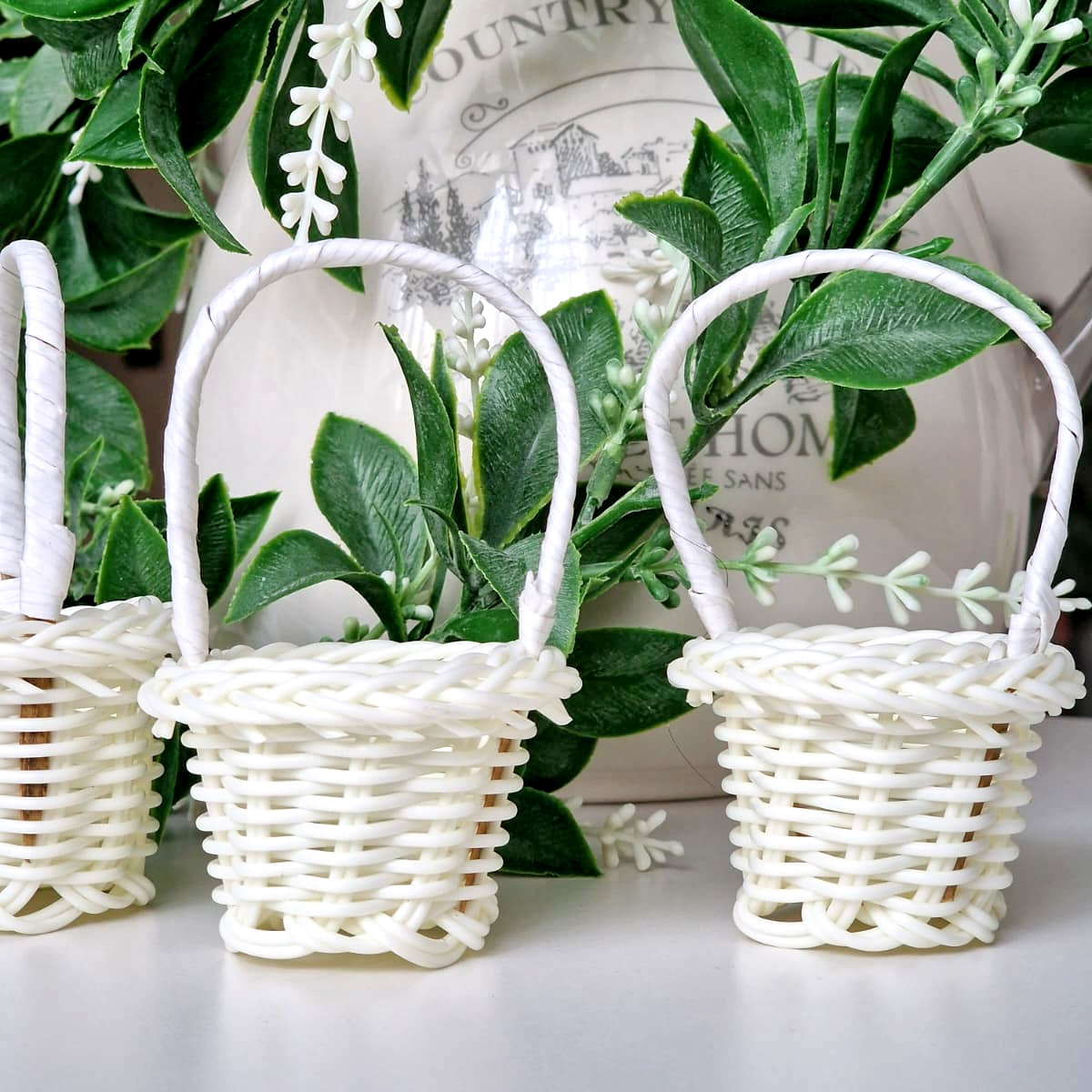 Coșuleț de culoare albă cu tortiță pentru aranjamente florale. Pot fi utilizate pentru flori de mici dimensiuni sau pentru diverse obiecte artizanale create de dvs. Coșulețele albe asigură un aspect plăcut și interesant produselor dvs.