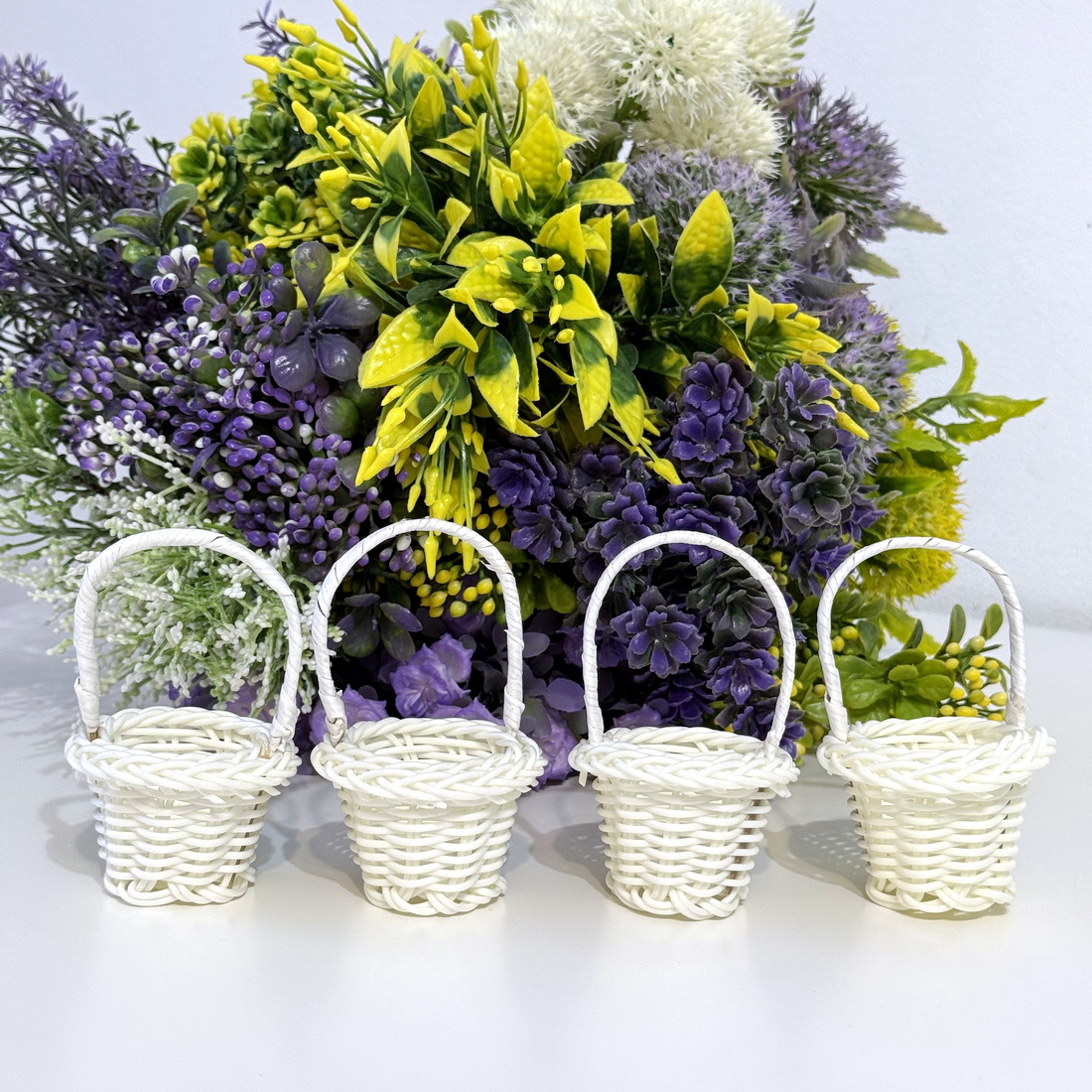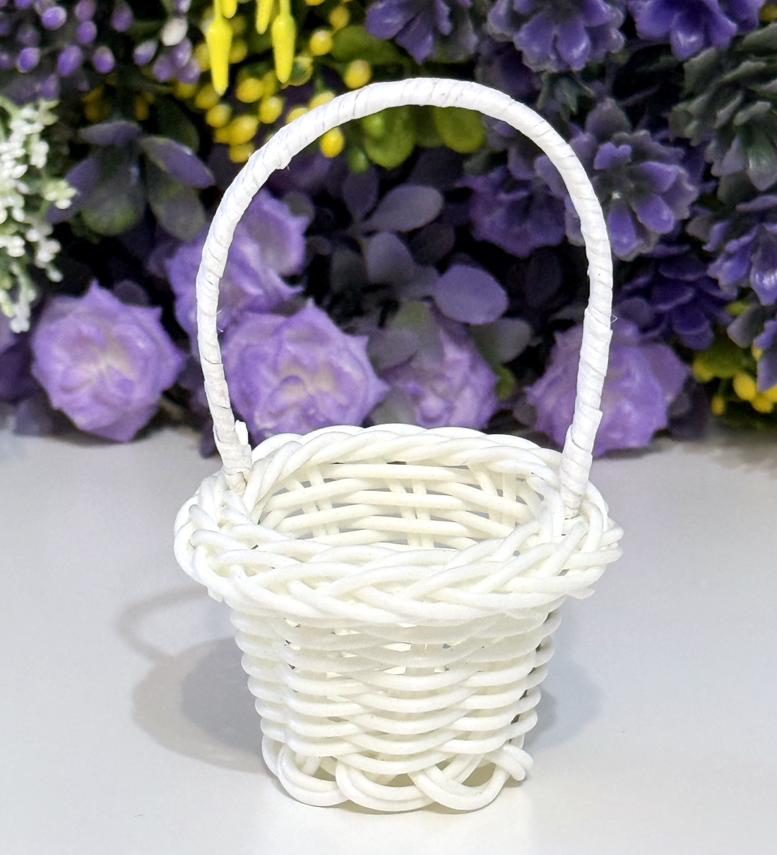 Coșuleț de culoare albă cu tortiță pentru aranjamente florale. Pot fi utilizate pentru flori de mici dimensiuni sau pentru diverse obiecte artizanale create de dvs. Coșulețele albe asigură un aspect plăcut și interesant produselor dvs.