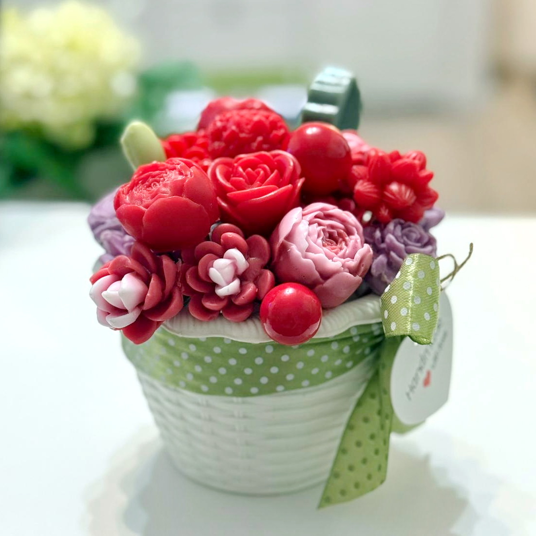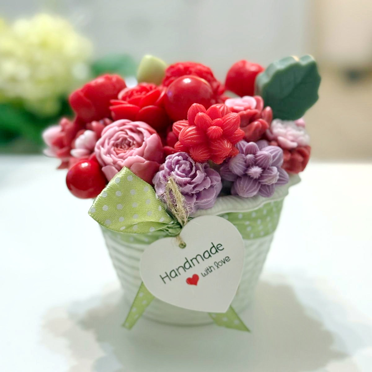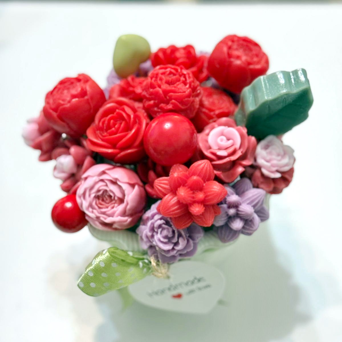 Fiecare aranjament cu flori din săpun este turnat individual. Aranjamentele sunt unicat, culorile florilor fiind diferite.