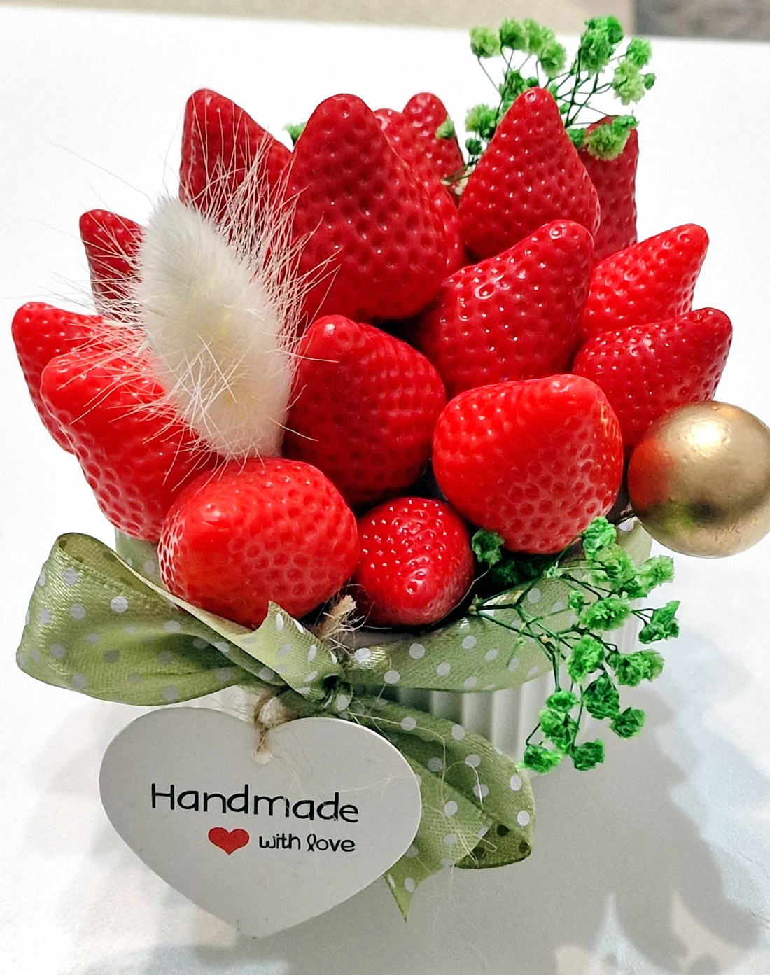 Aranjamentele sunt realizate manual, din ingrediente naturale atent selecționate aranjate cu grijă și atenție în bol alb din plastic.