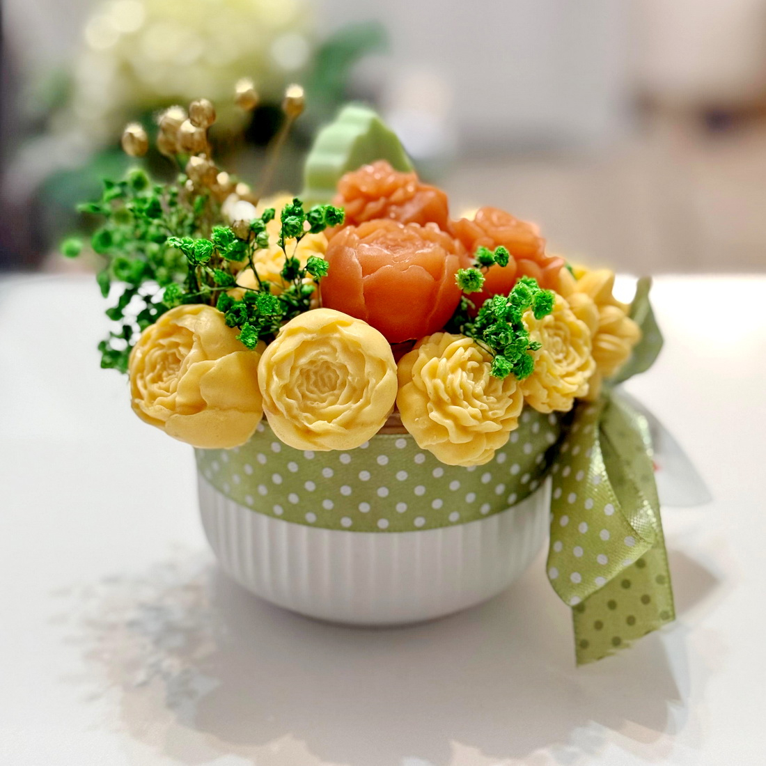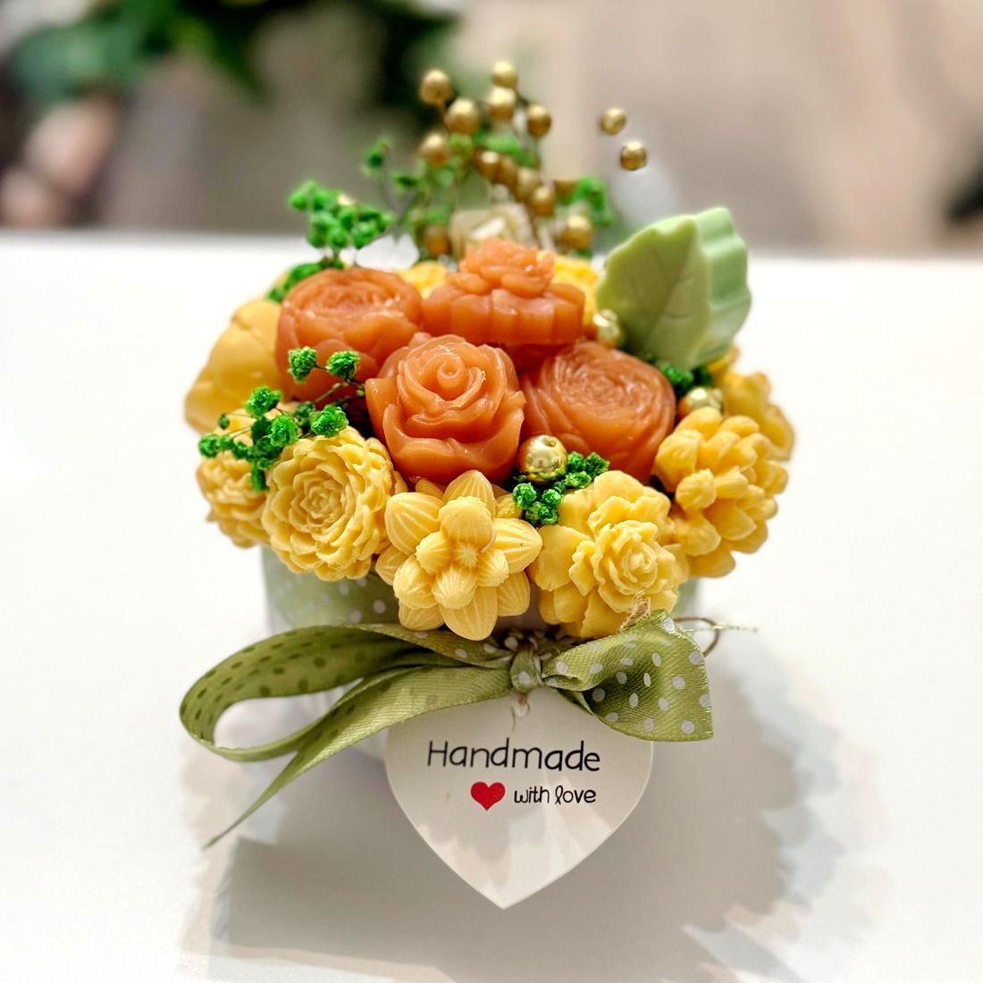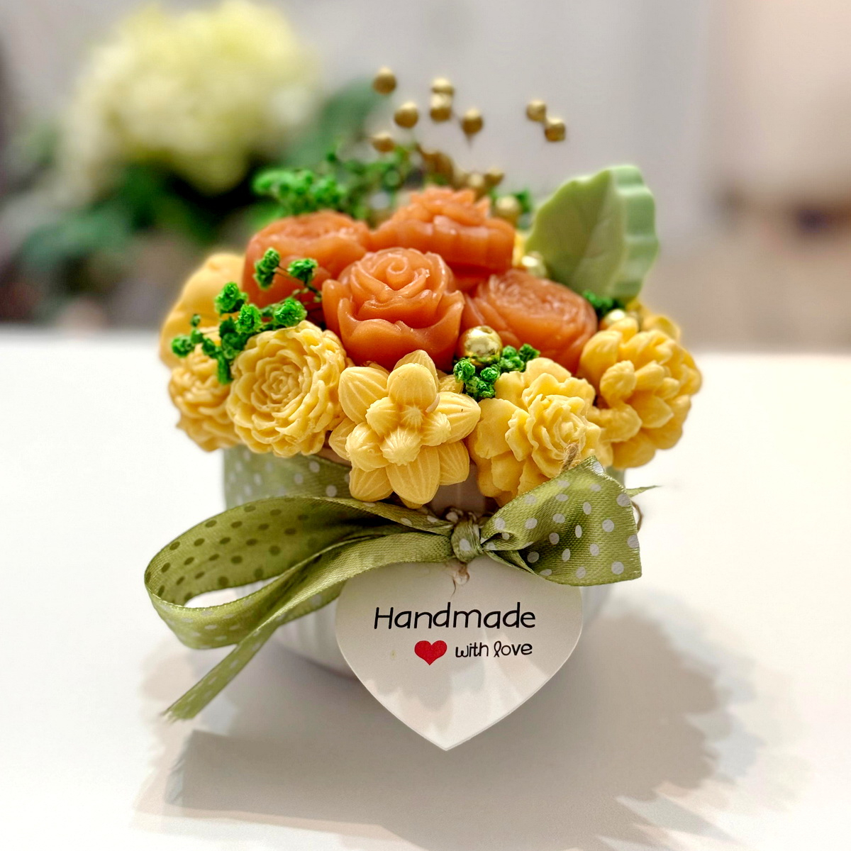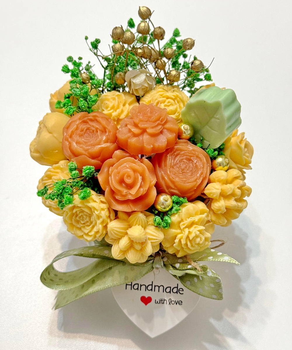 Fiecare aranjament cu flori din săpun este turnat individual. Aranjamentele sunt unicat, culorile florilor fiind diferite.
