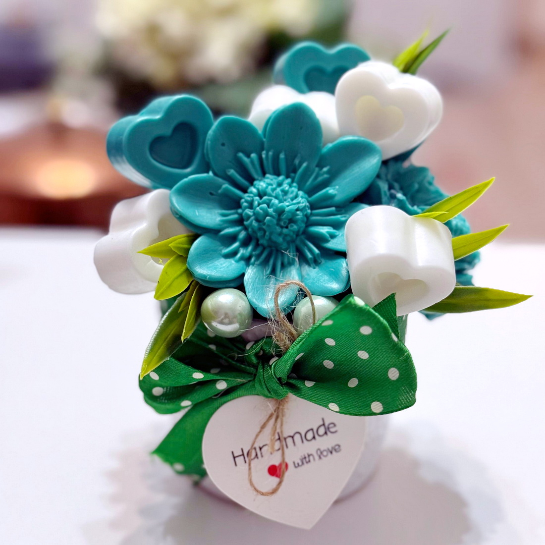 Fiecare aranjament cu flori din săpun este turnat individual. Aranjamentele sunt unicat, culorile florilor fiind diferite.