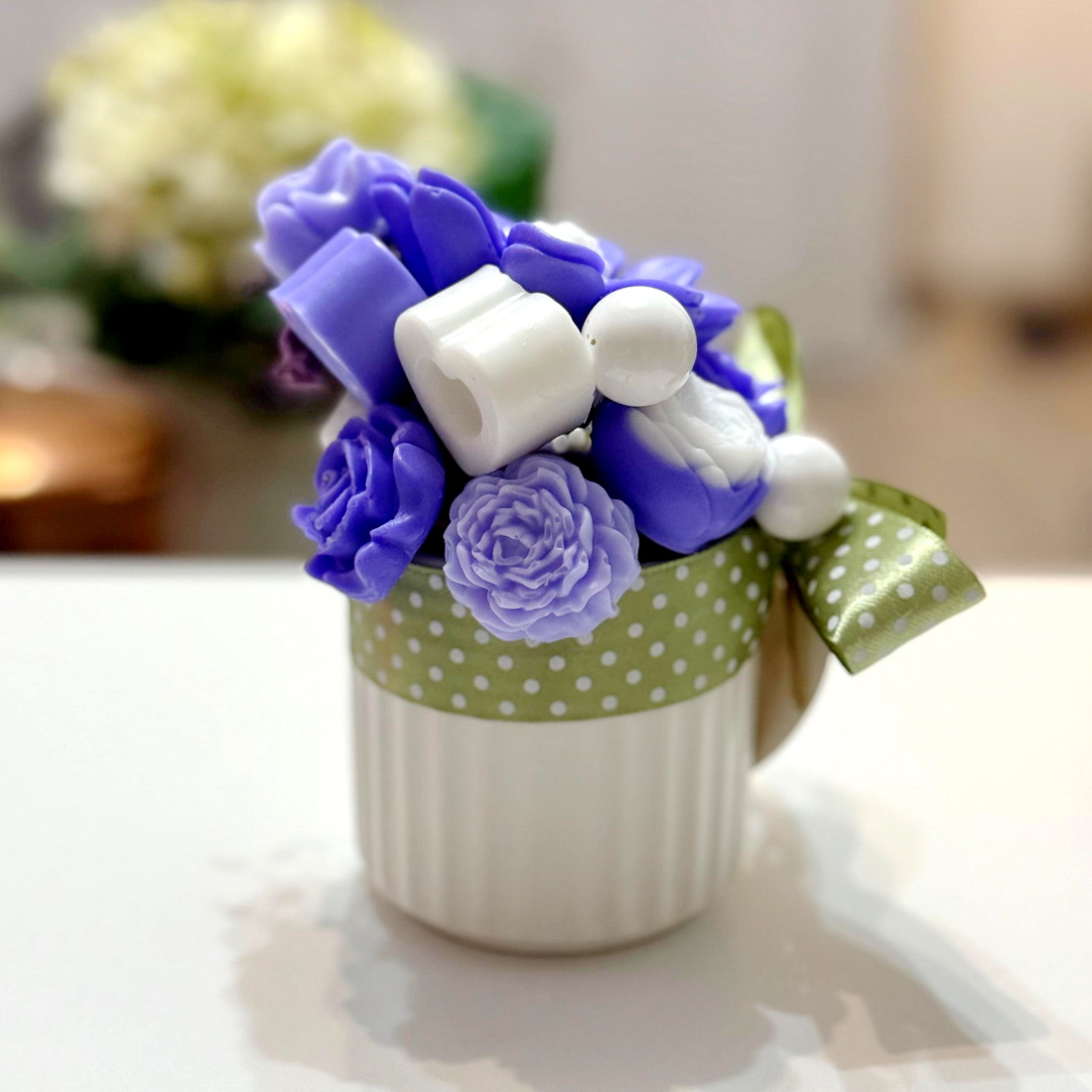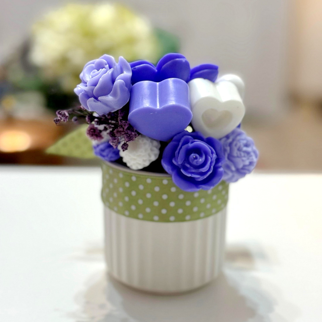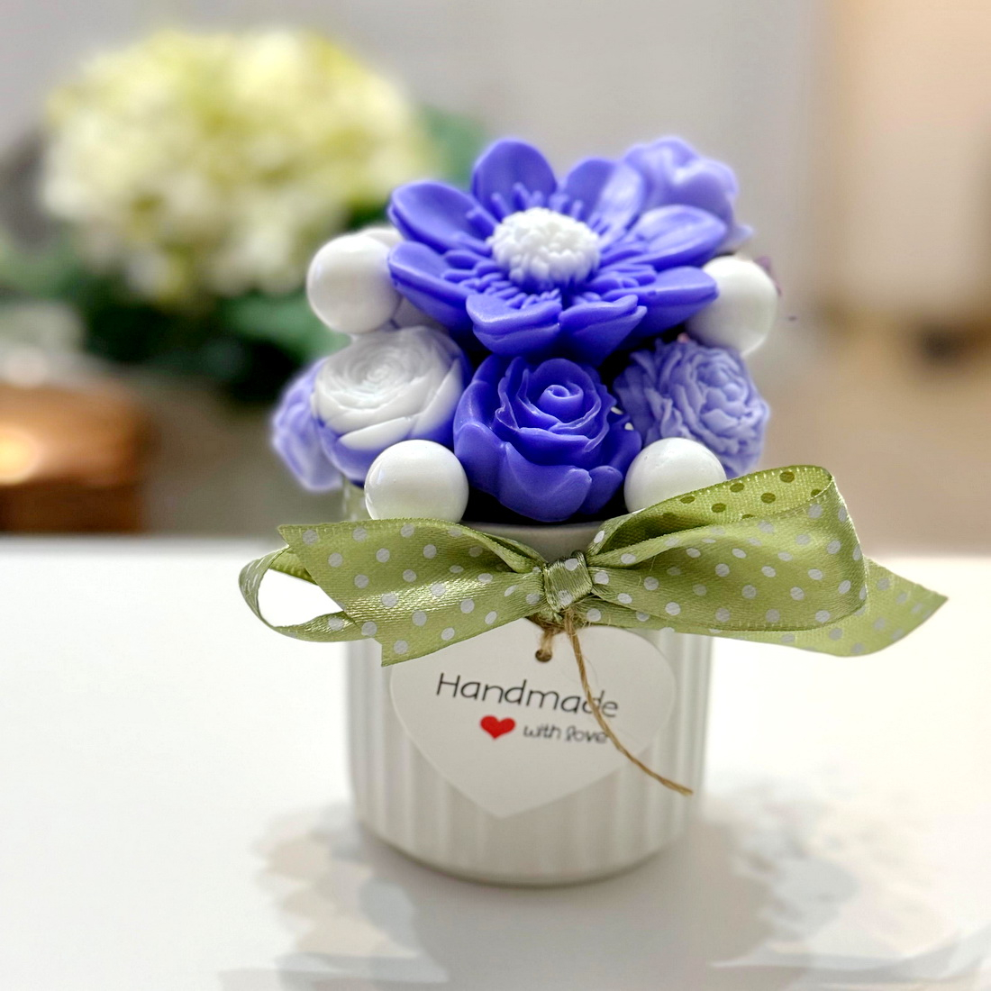 Fiecare aranjament cu flori din săpun este turnat individual. Aranjamentele sunt unicat, culorile florilor fiind diferite.