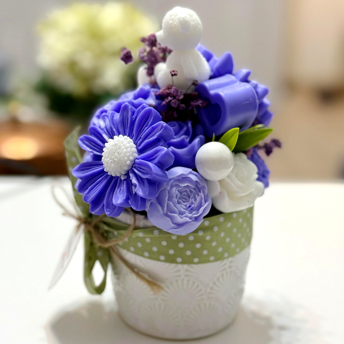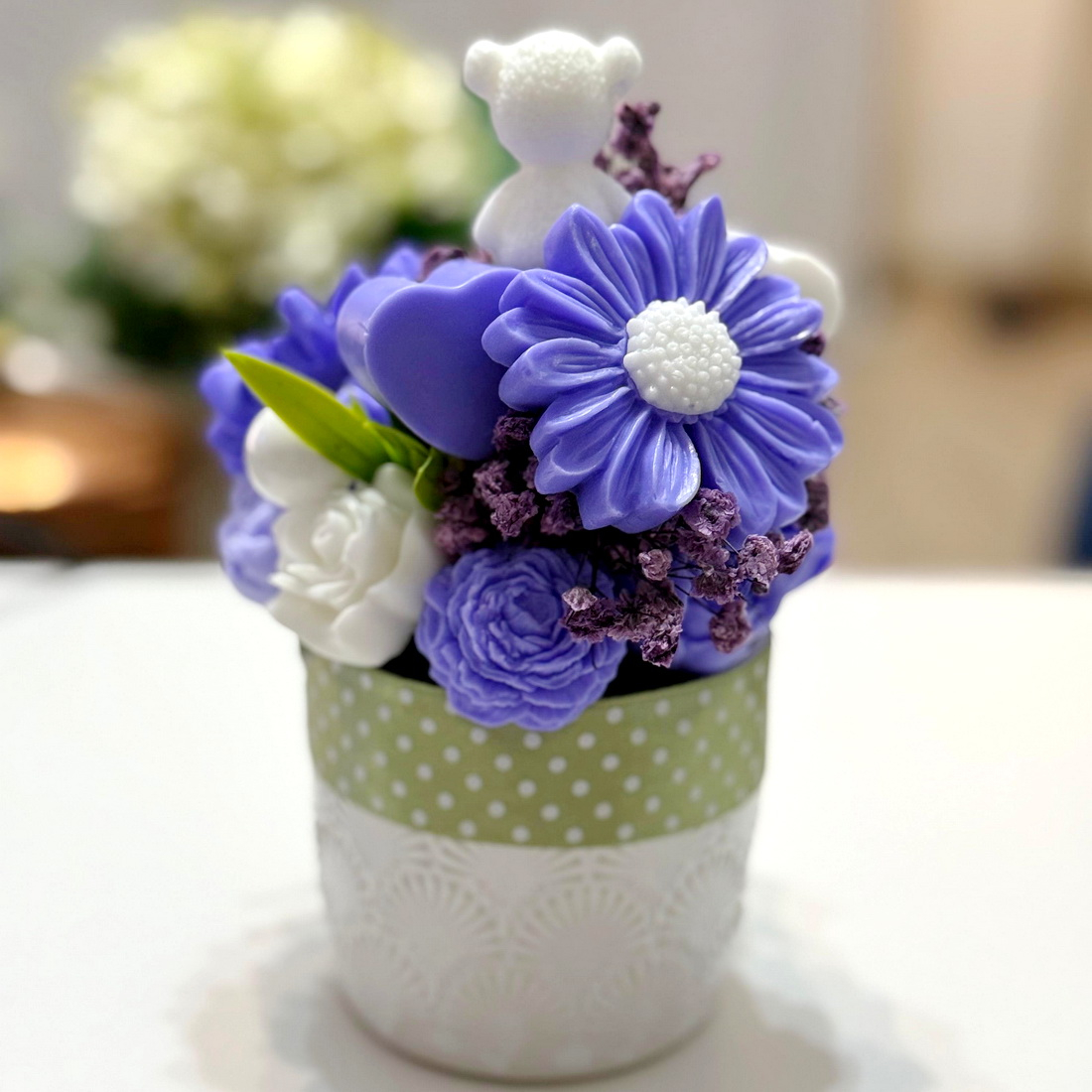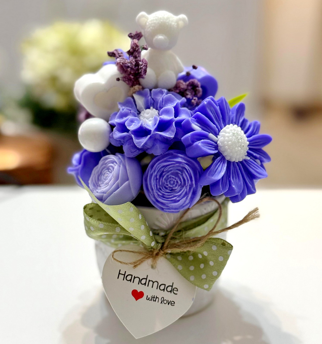 Fiecare aranjament cu flori din săpun este turnat individual. Aranjamentele sunt unicat, culorile florilor fiind diferite.