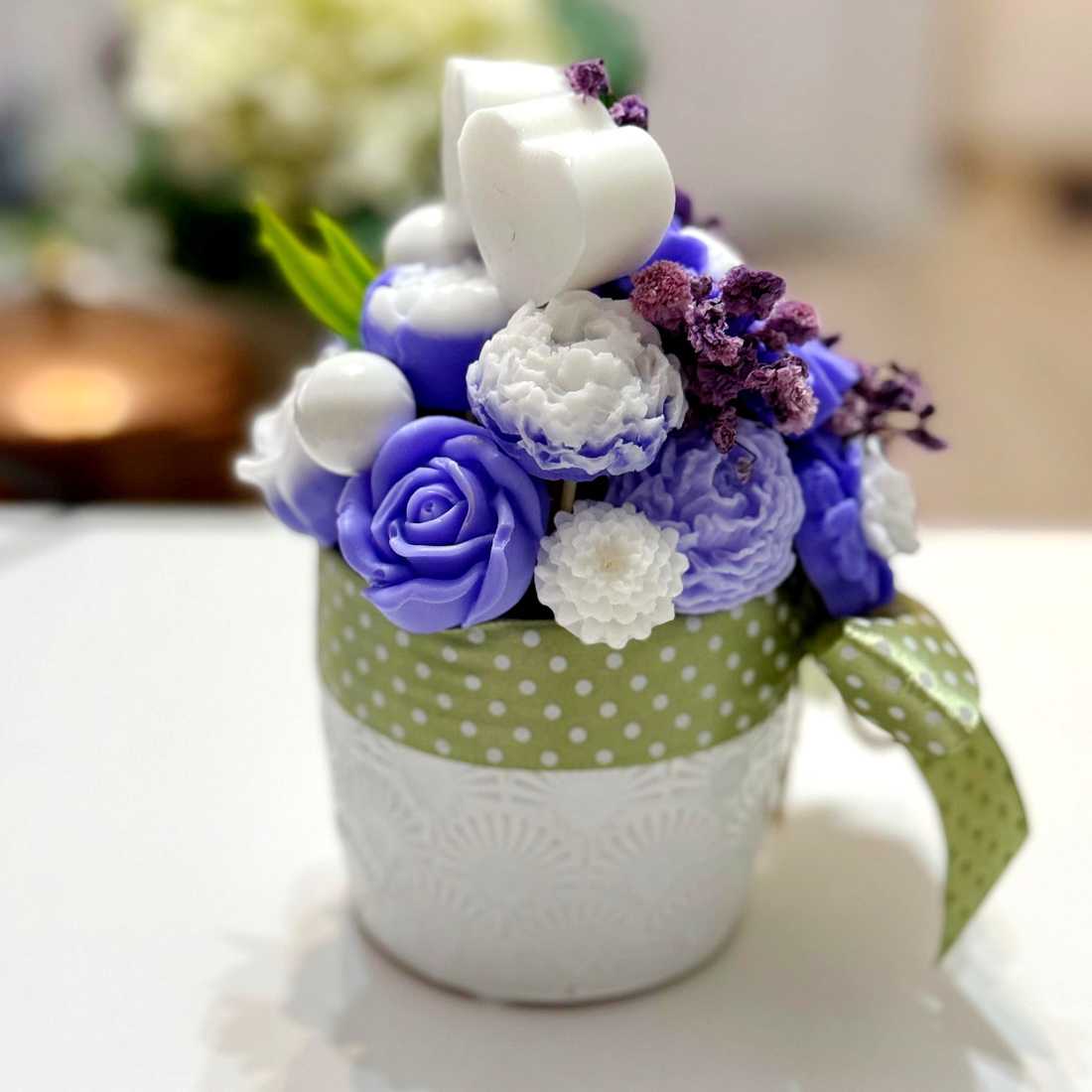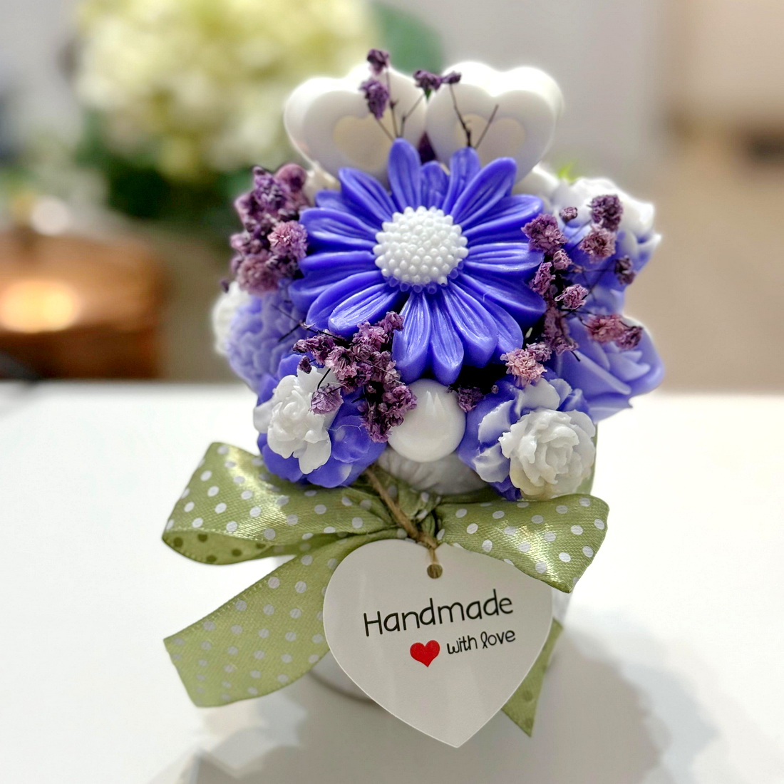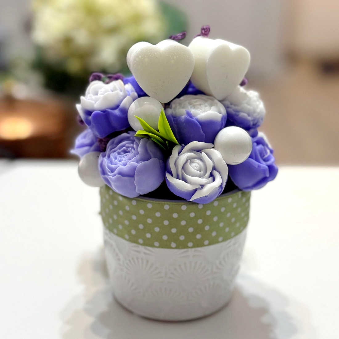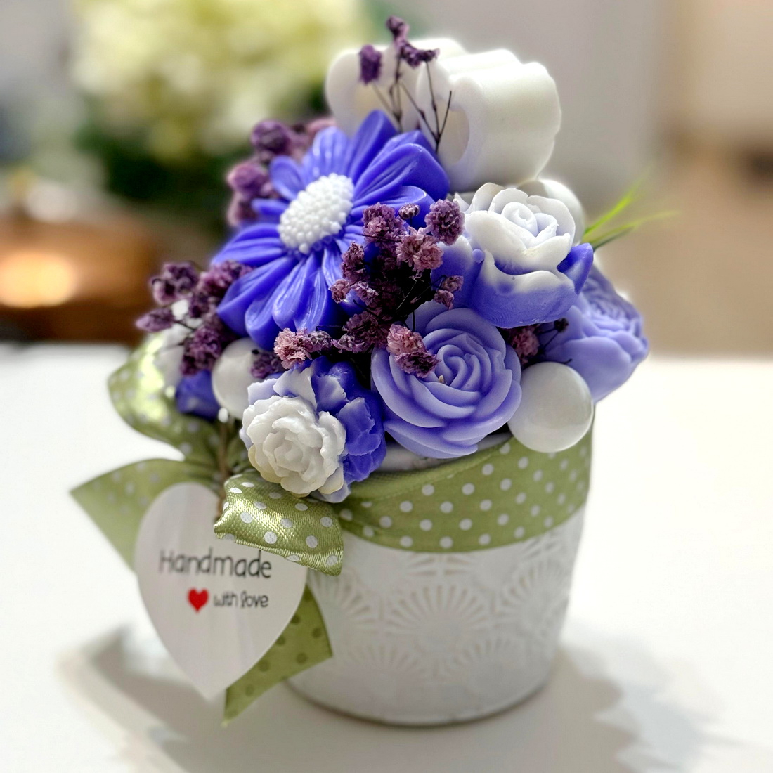 Fiecare aranjament cu flori din săpun este turnat individual. Aranjamentele sunt unicat, culorile florilor fiind diferite.