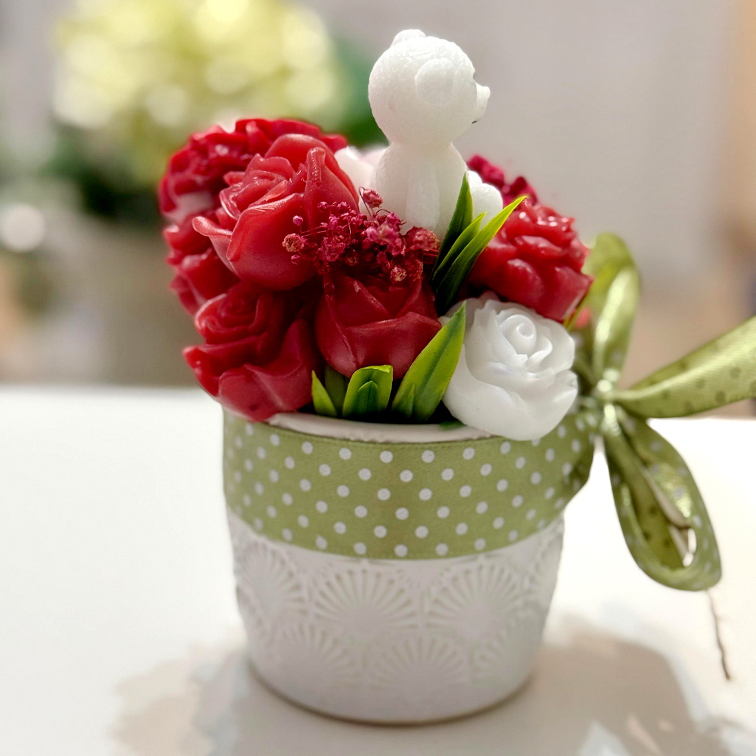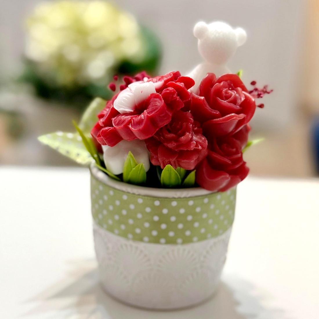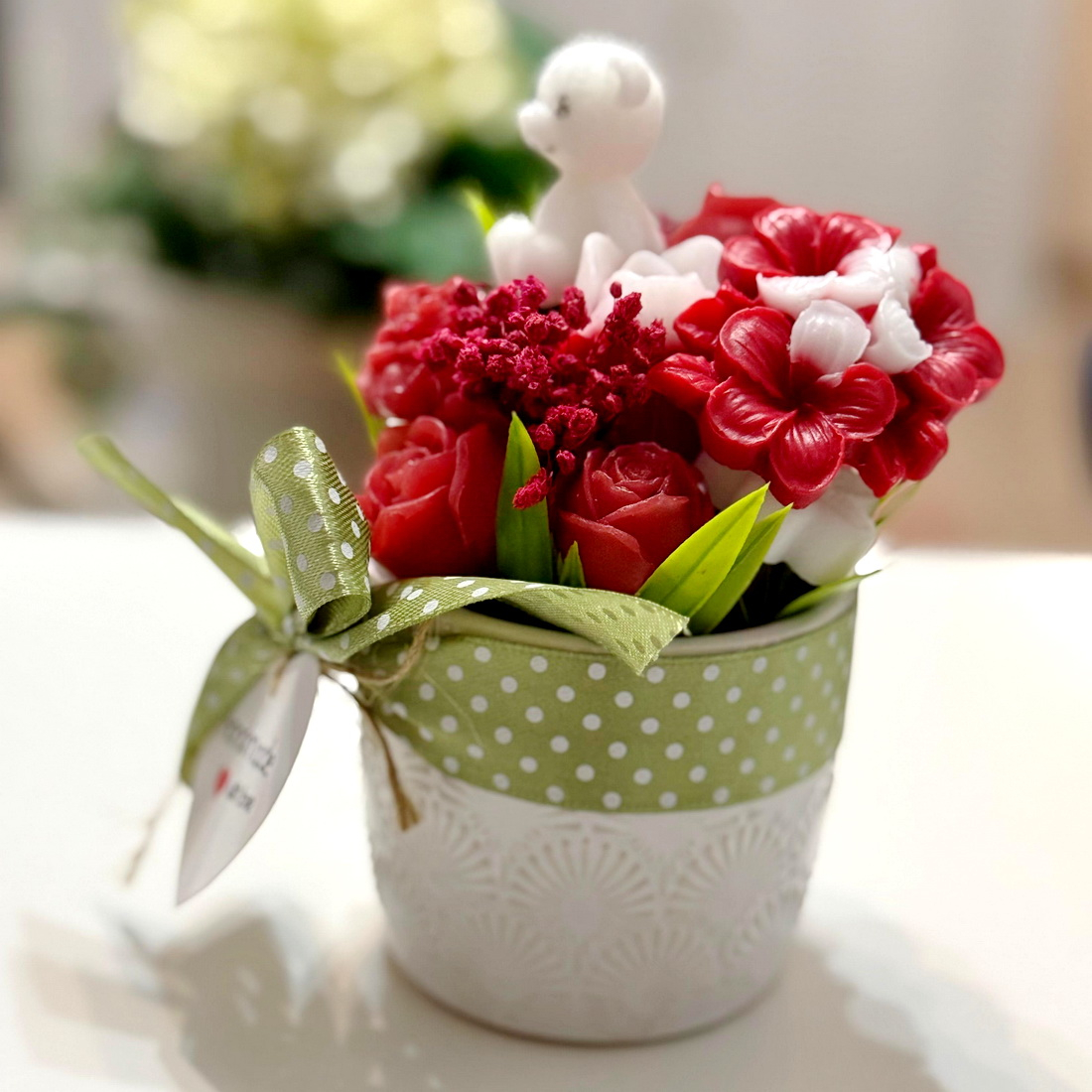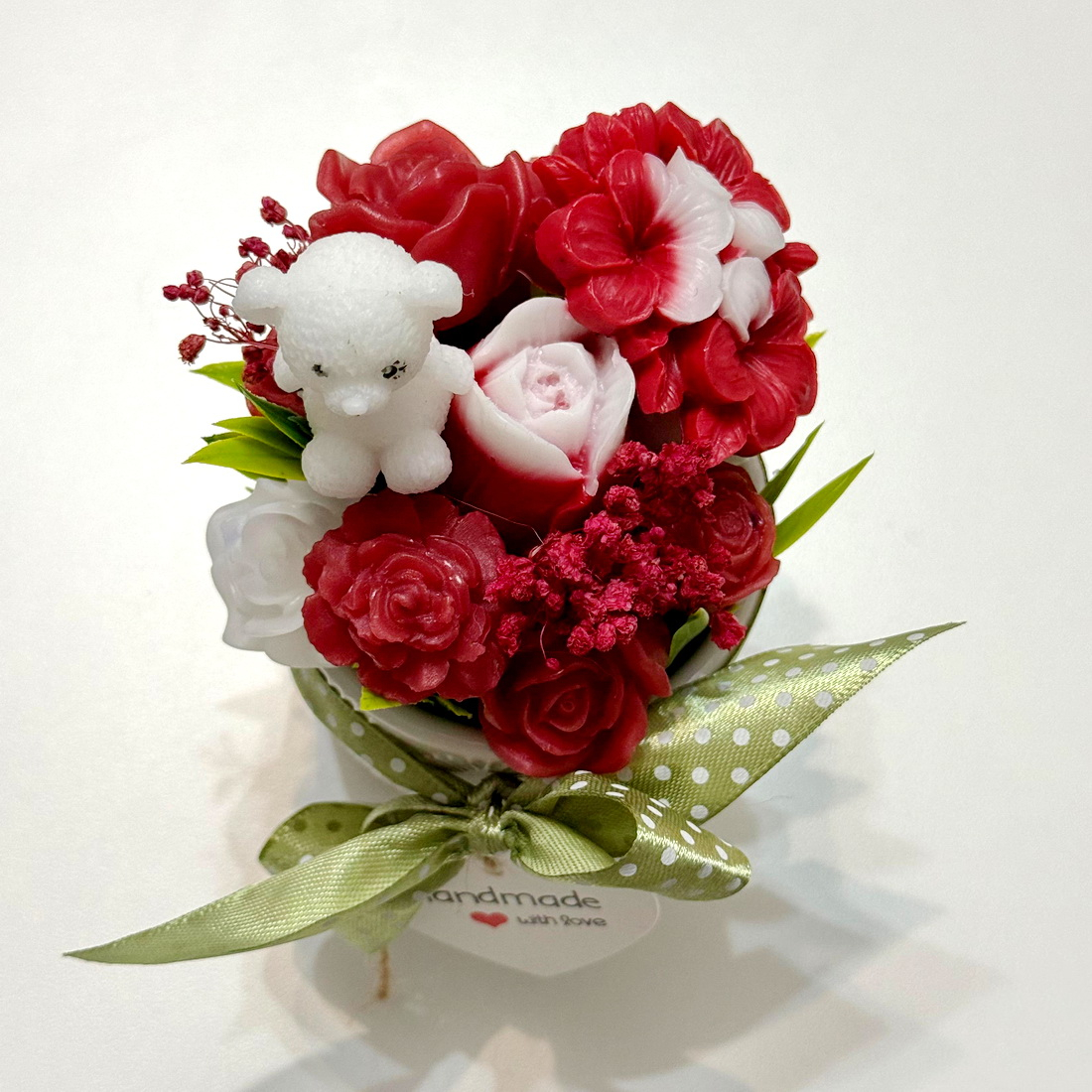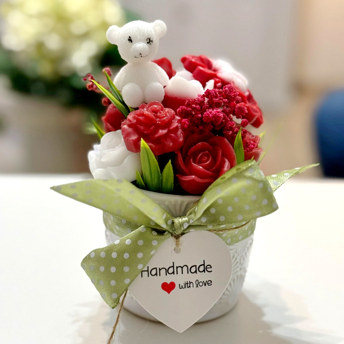 Fiecare aranjament cu flori din săpun este turnat individual. Aranjamentele sunt unicat, culorile florilor fiind diferite.