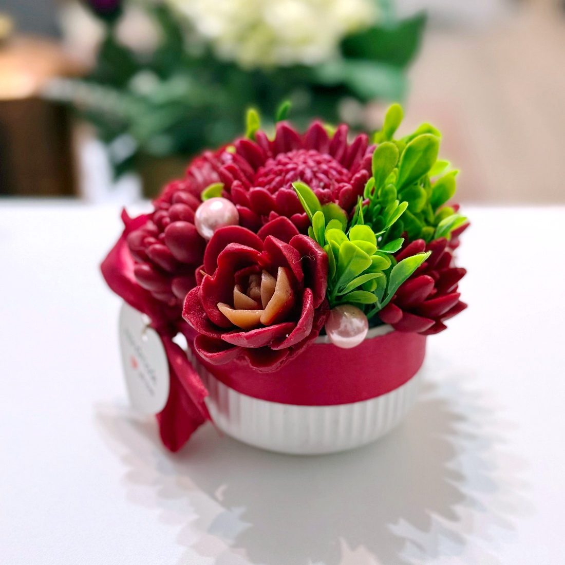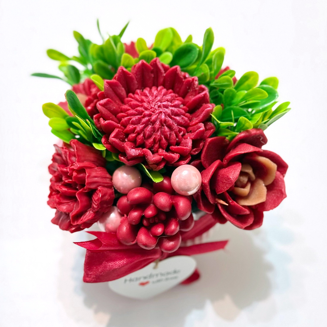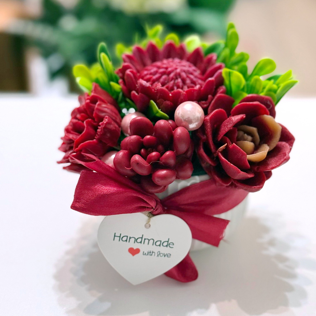 Fiecare aranjament cu flori din săpun este turnat individual. Aranjamentele sunt unicat, culorile florilor fiind diferite.