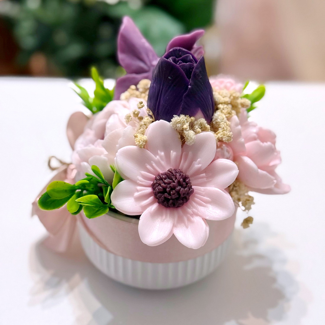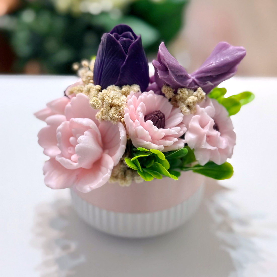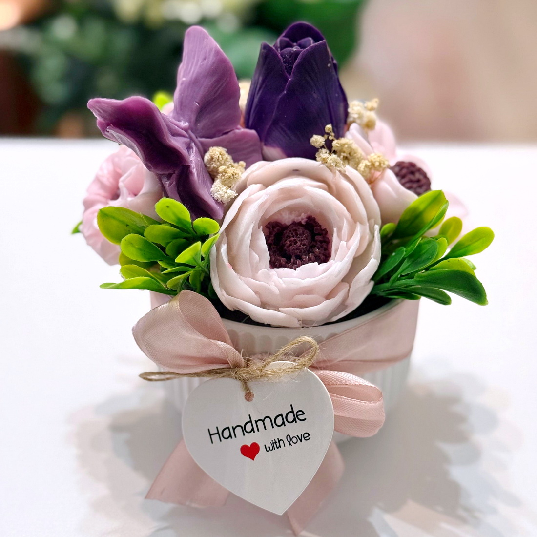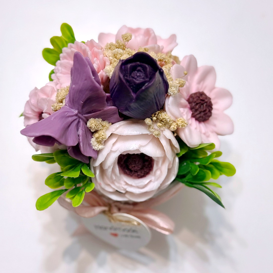 Fiecare aranjament cu flori din săpun este turnat individual. Aranjamentele sunt unicat, culorile florilor fiind diferite.