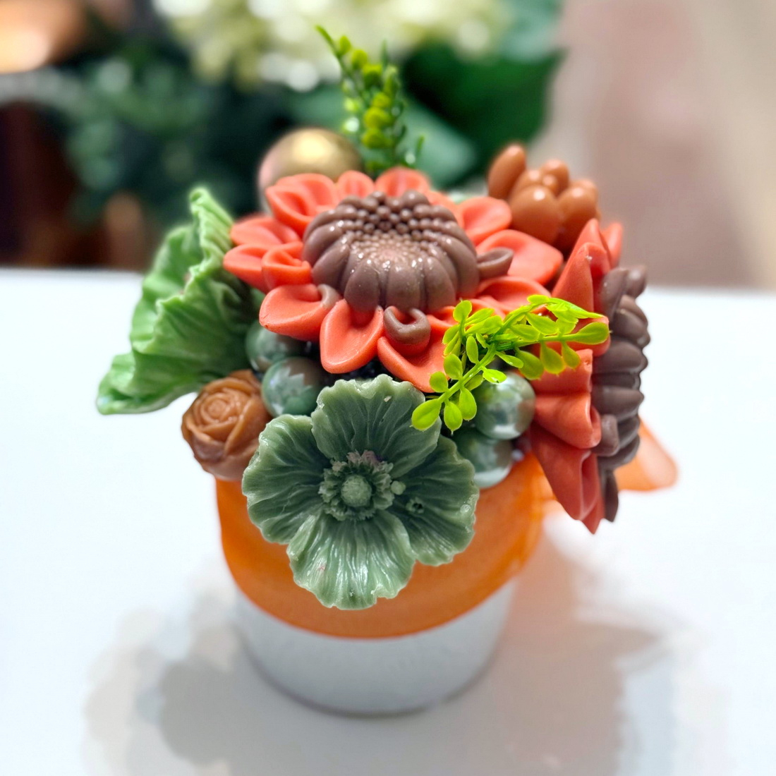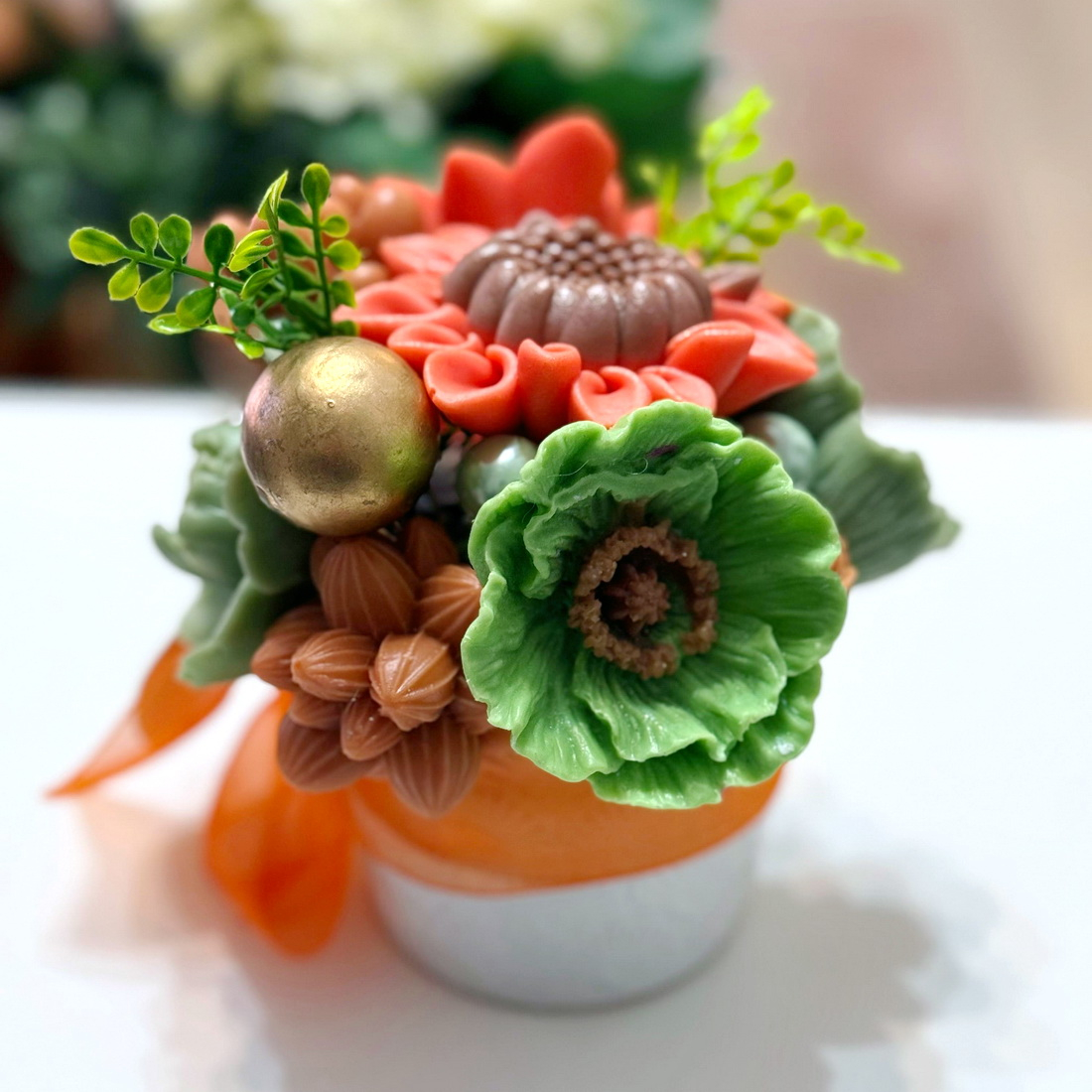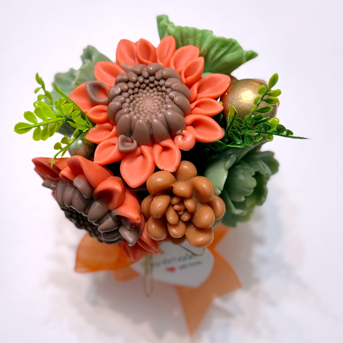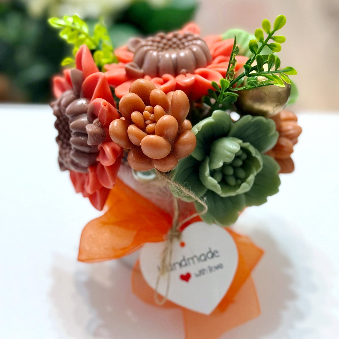 Fiecare aranjament cu flori din săpun este turnat individual. Aranjamentele sunt unicat, culorile florilor fiind diferite.