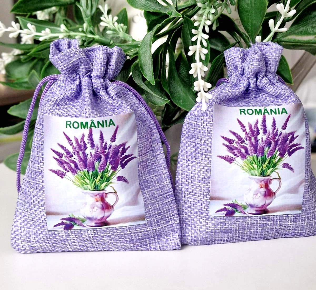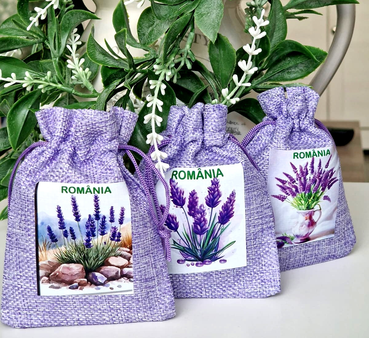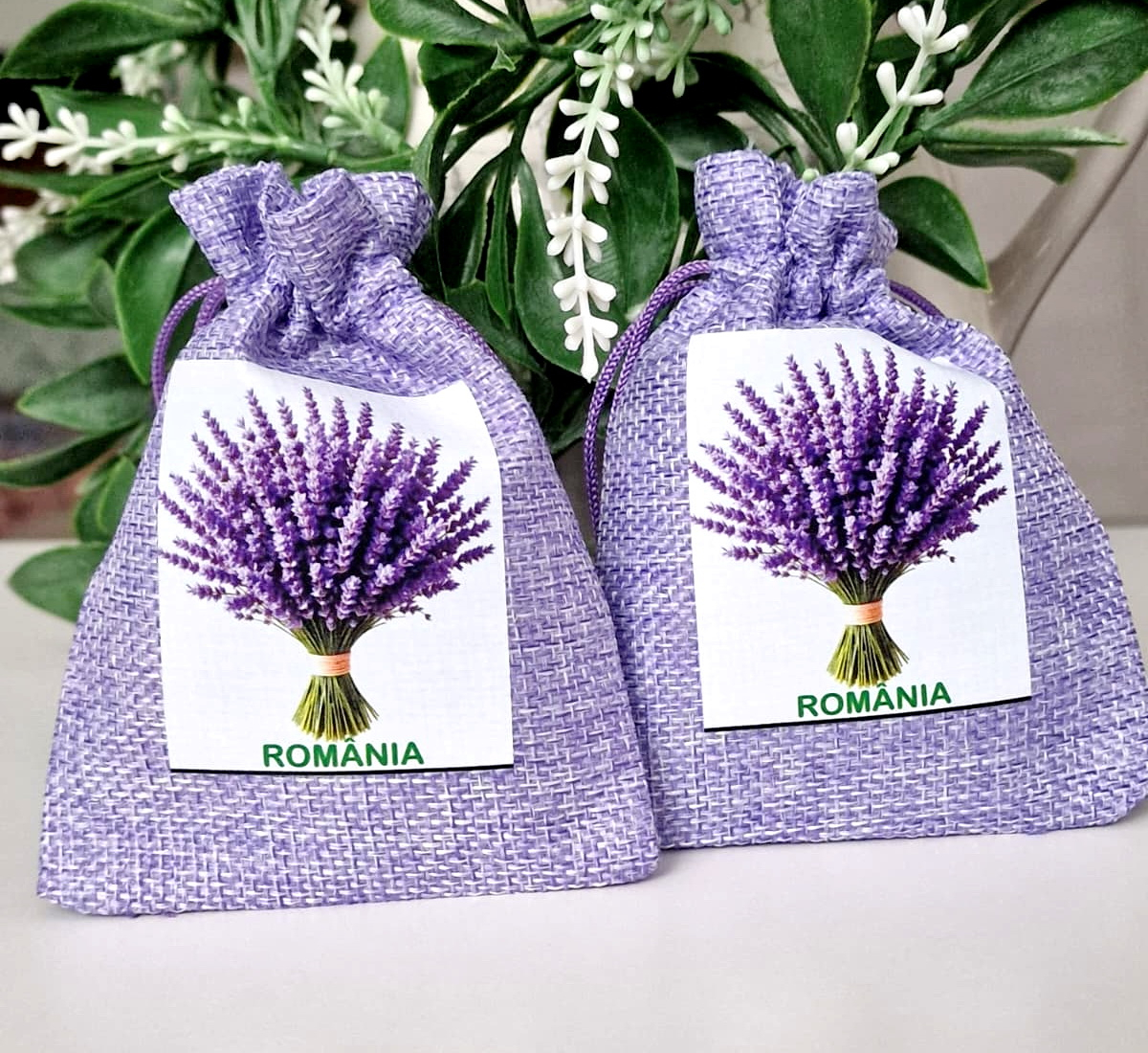 Săculeții din pânză groasă de culoare mov sunt deosebiți prin aspect și culoare. Aceștia au aplicat pe una din fețe un imprimeu cauciucat cu lavandă și inscripționați România (4 modele). Săculeții sunt foarte utili pentru cei care doresc să facă diverse cadouri sau să îi umple cu flori parfumate (lavandă, tei etc.). Bijuteriile vor fi ferite în acești săculeți și vor avea un aspect deosebit astfel ambalate. Pot fi folosiți de asemenea pentru mărțișoare sau mărturii de nuntă sau botez.